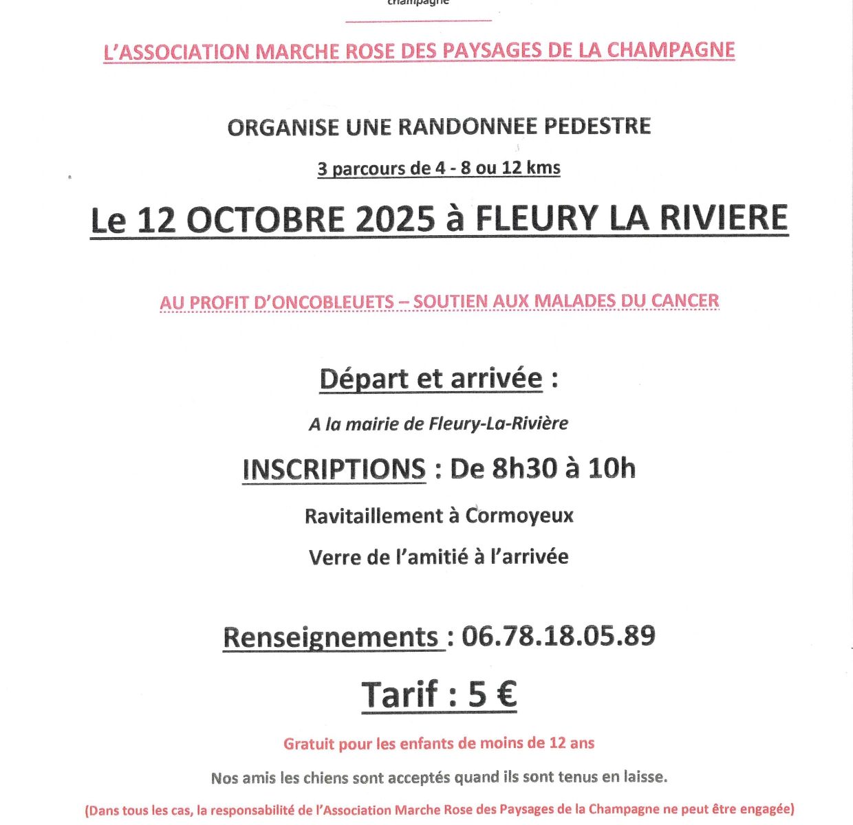 Randonné pédestre le 12 octobre 2025- Association La Marche Rose des Paysages de la Champagne-